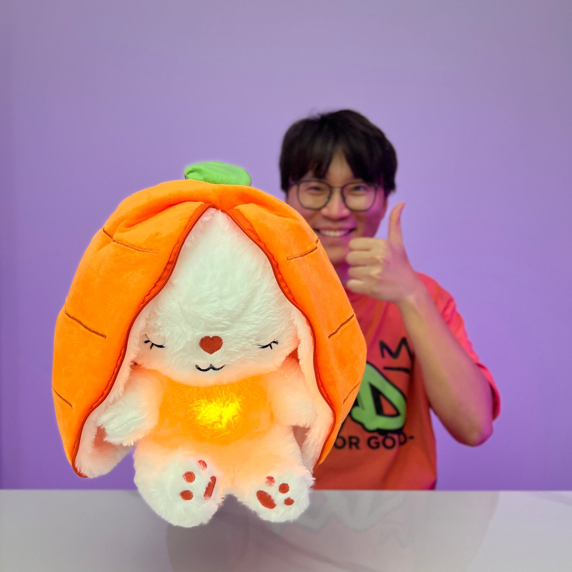 The Breathing Buddies plush is full of cozy charm—each fruit-shaped plush hides a fuzzy bunny or donkey tucked gently inside. Unzip the outer layer to discover a sweet little animal that “breathes” as it rests: its belly rises and falls with a glowing rhythm, just like calm, peaceful breathing.
