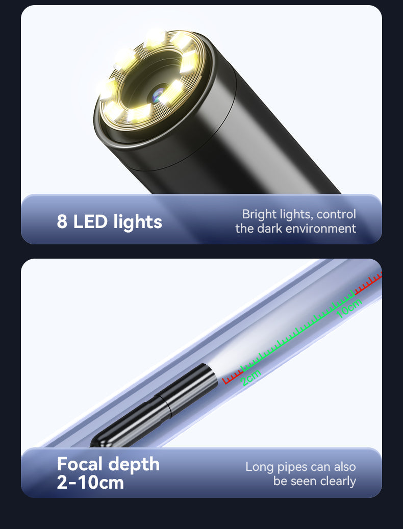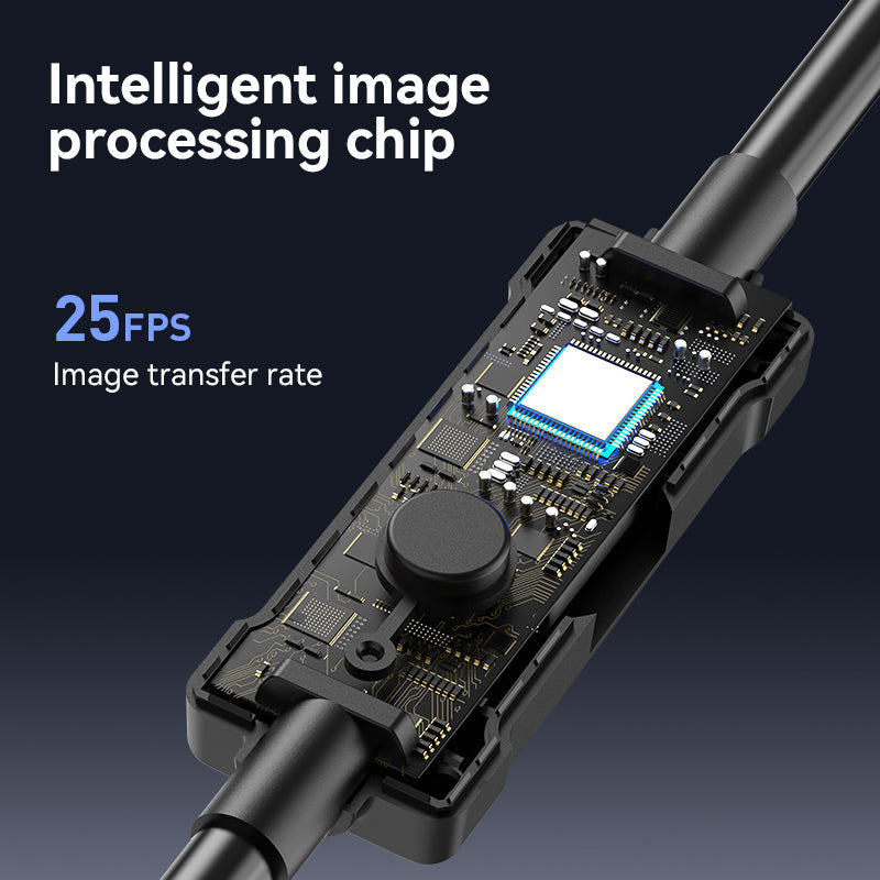 The 5-meter semi-rigid cable bends and holds its shape, letting you reach into deep or curved spaces with precision. The 2.0MP HD camera streams smooth 25FPS video with a clear 2–10cm focal range.