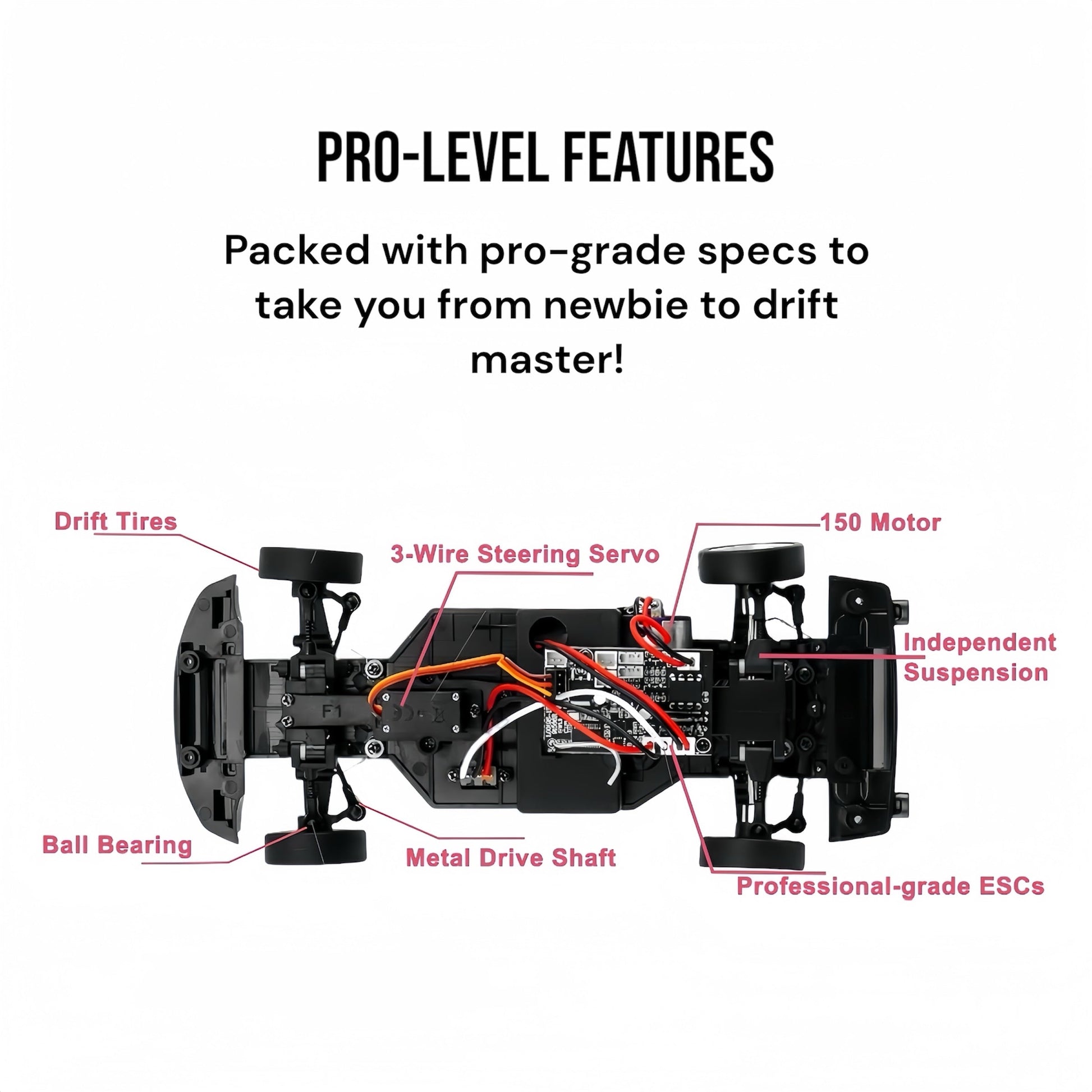 It’s packed with advanced features like a high-performance ESC gyro, independent suspension, full-scale steering, and a metal drive shaft for smooth and precise drifts. The ball bearings enhance performance, while the adjustable tilt system and drift tires let you fine-tune your car for ultimate control.