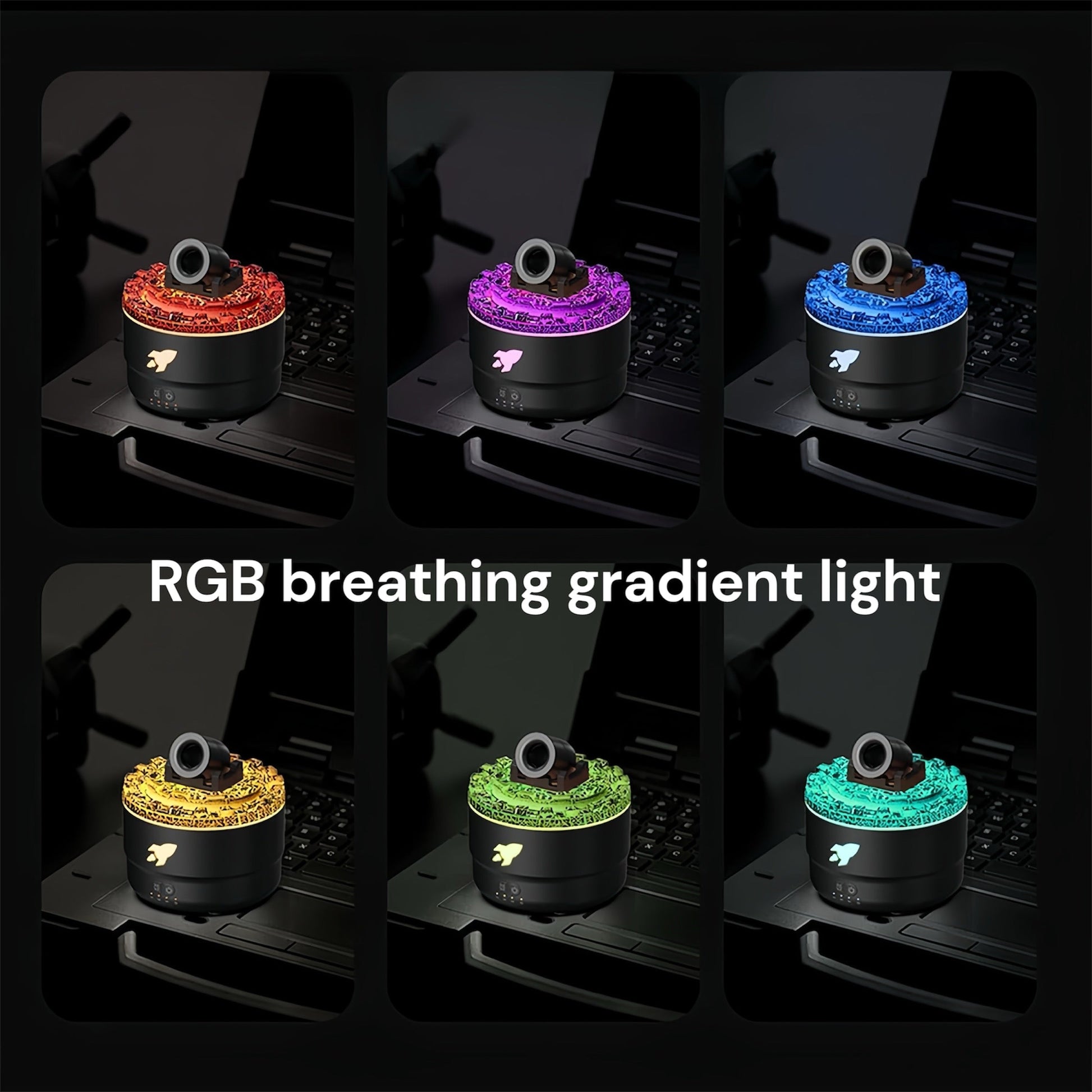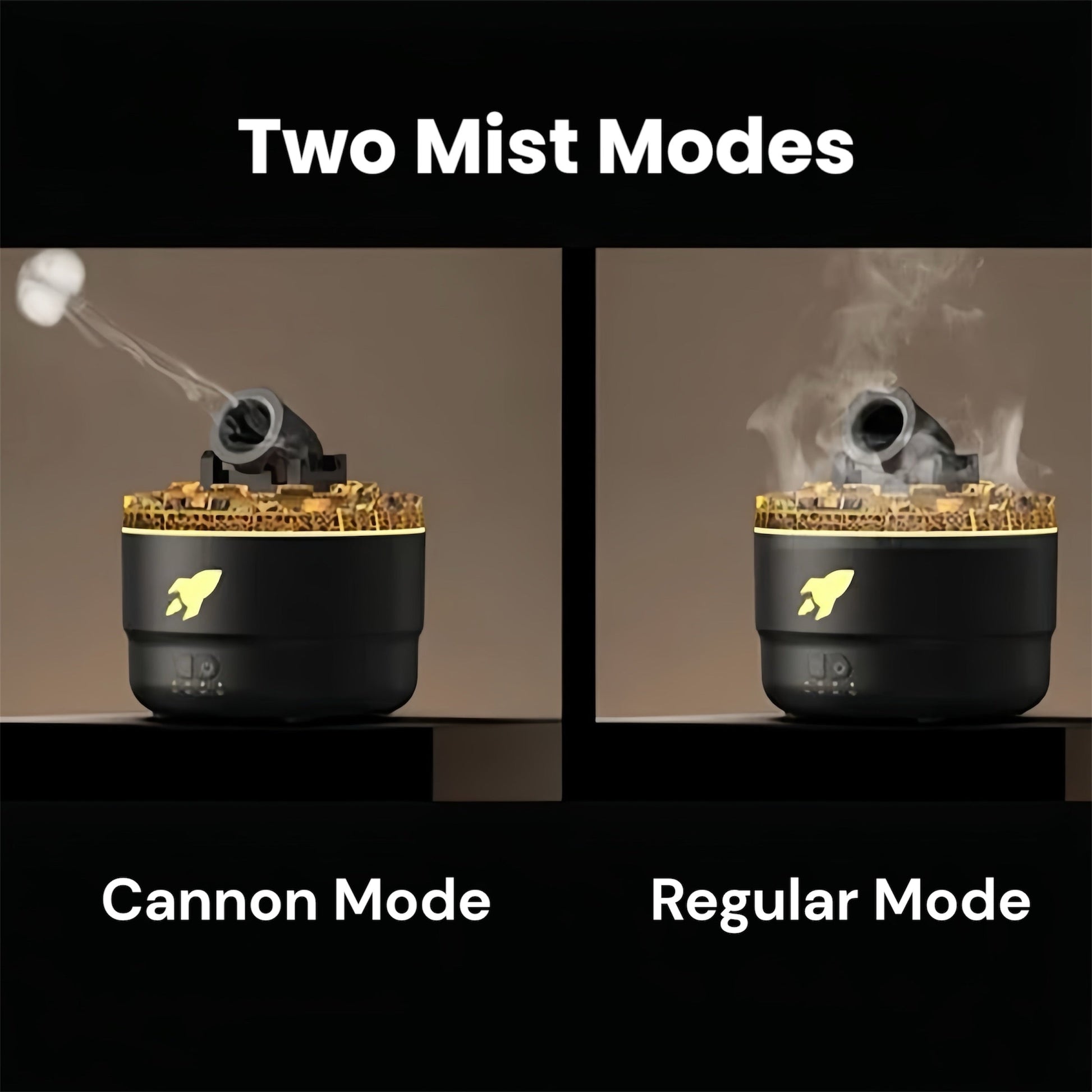 Introducing the CannonMist™ – the perfect blend of style and functionality! With its mini cannon design, this aromatherapy humidifier isn’t just cute, it’s a showstopper. Switch between the smoke ring cannon mode or the regular mist mode to create the perfect atmosphere. With a cool breathing gradient light mode, you can set the vibe in your room while enjoying its soothing mist, while the auto-off timer lets you sleep worry-free. Powered by USB, it’s ideal for your bedroom, reducing dryness and bringing a calming vibe.