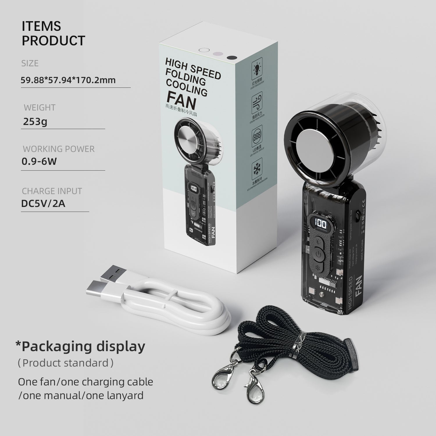 Designed for portability, it weighs just 0.5 lbs and comes with a lanyard in the box. You can hold it in hand, hang it around your neck, or place it on a table. Built-in LED lights with multiple brightness levels and a flashing mode add extra convenience for outdoor use. Whether you're hiking, commuting, or chilling at home, IceRush Turbo is your ultimate summer essential.