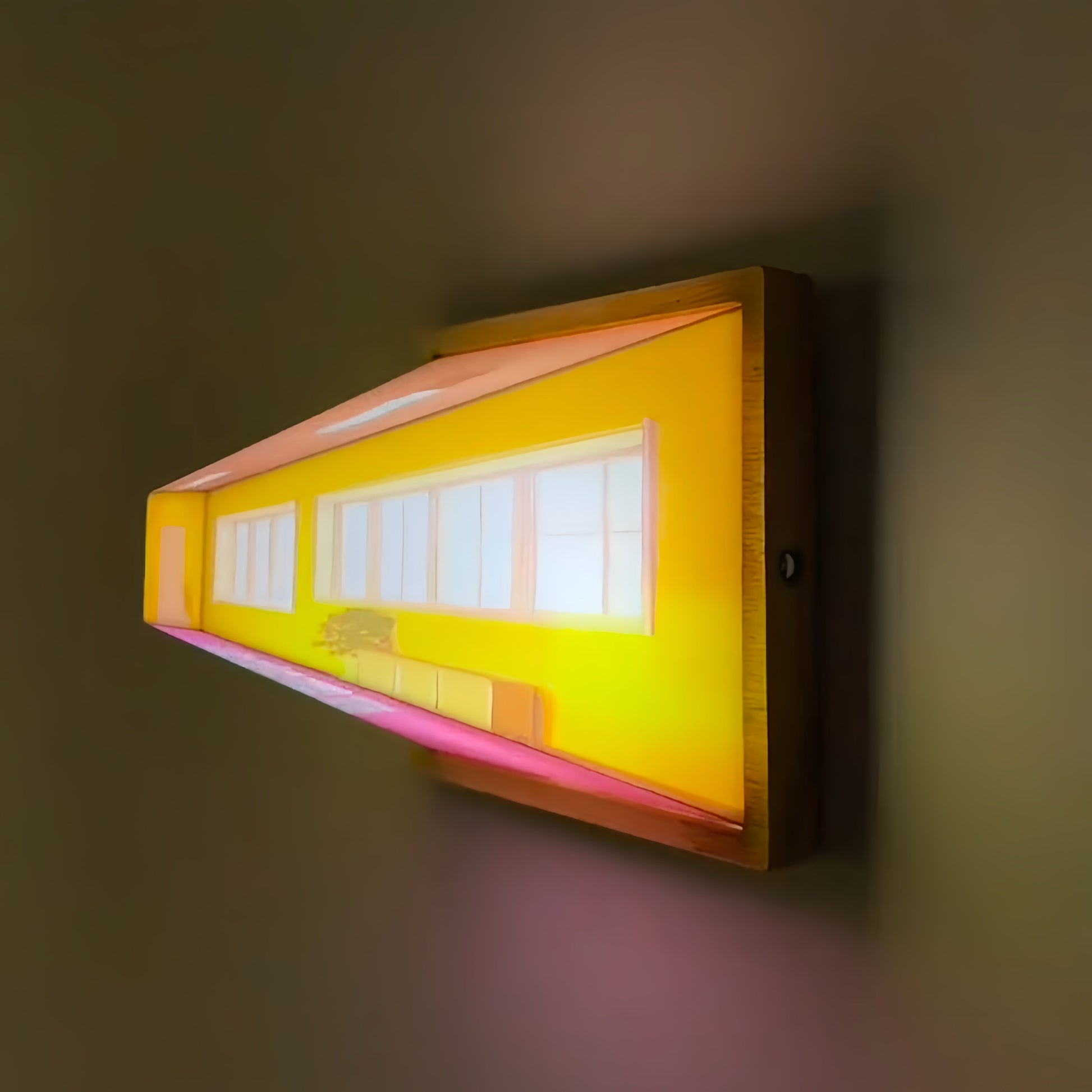 The IllusioLight 3D Ambient Lamp brings a captivating optical illusion to your space. Its triangular design creates a stunning 3D depth effect, making it appear as a recessed scene from the right angle. Perfect for wall mounting or tabletop display, it adds a unique artistic touch to any room.