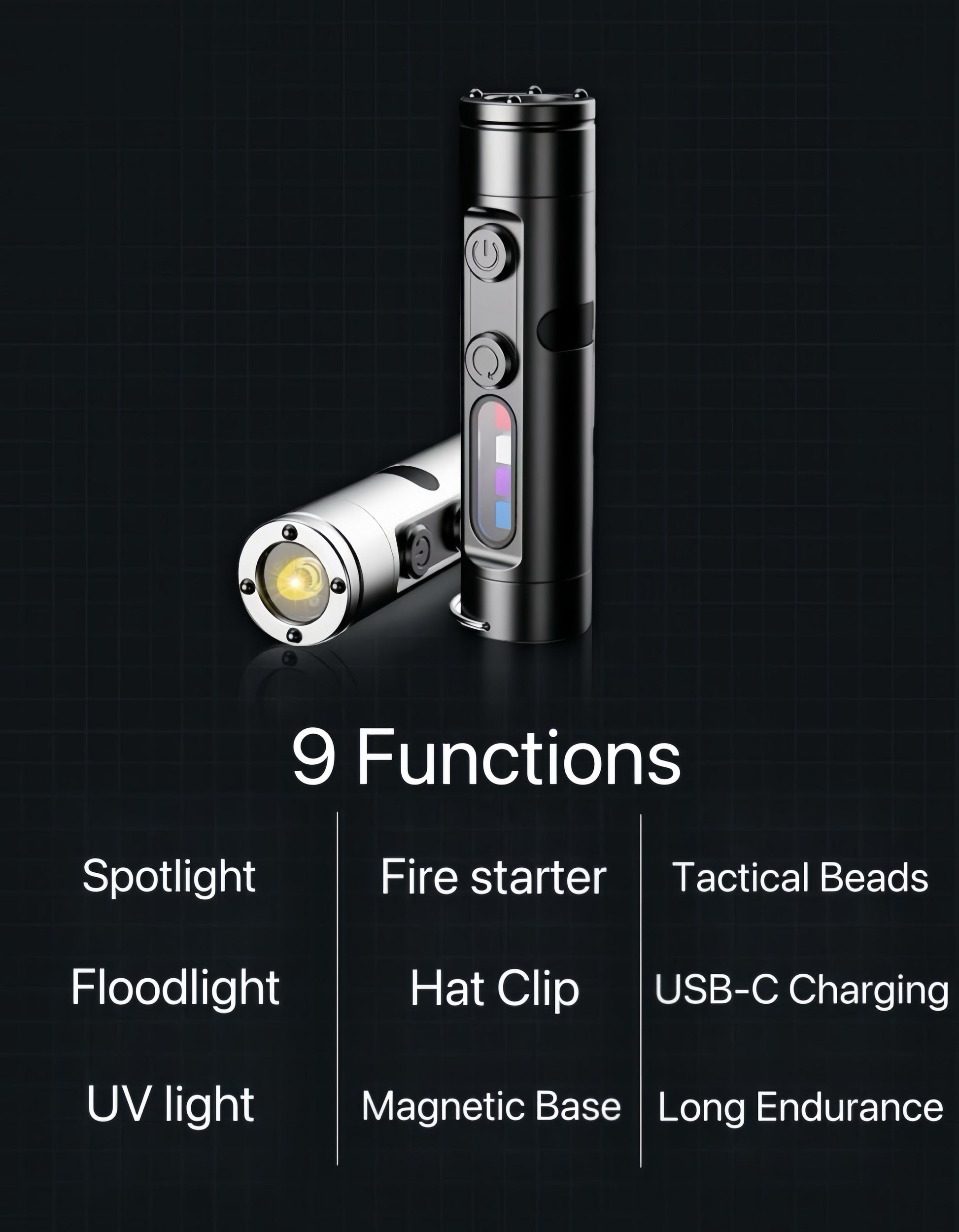 The magnetic base and rugged clip give you hands-free versatility, and the tactical steel tips at the top offer light impact assistance in unexpected situations. Whether you're on a trail, under the hood, or prepping your gear bag, TacLite Mini is built to be ready.