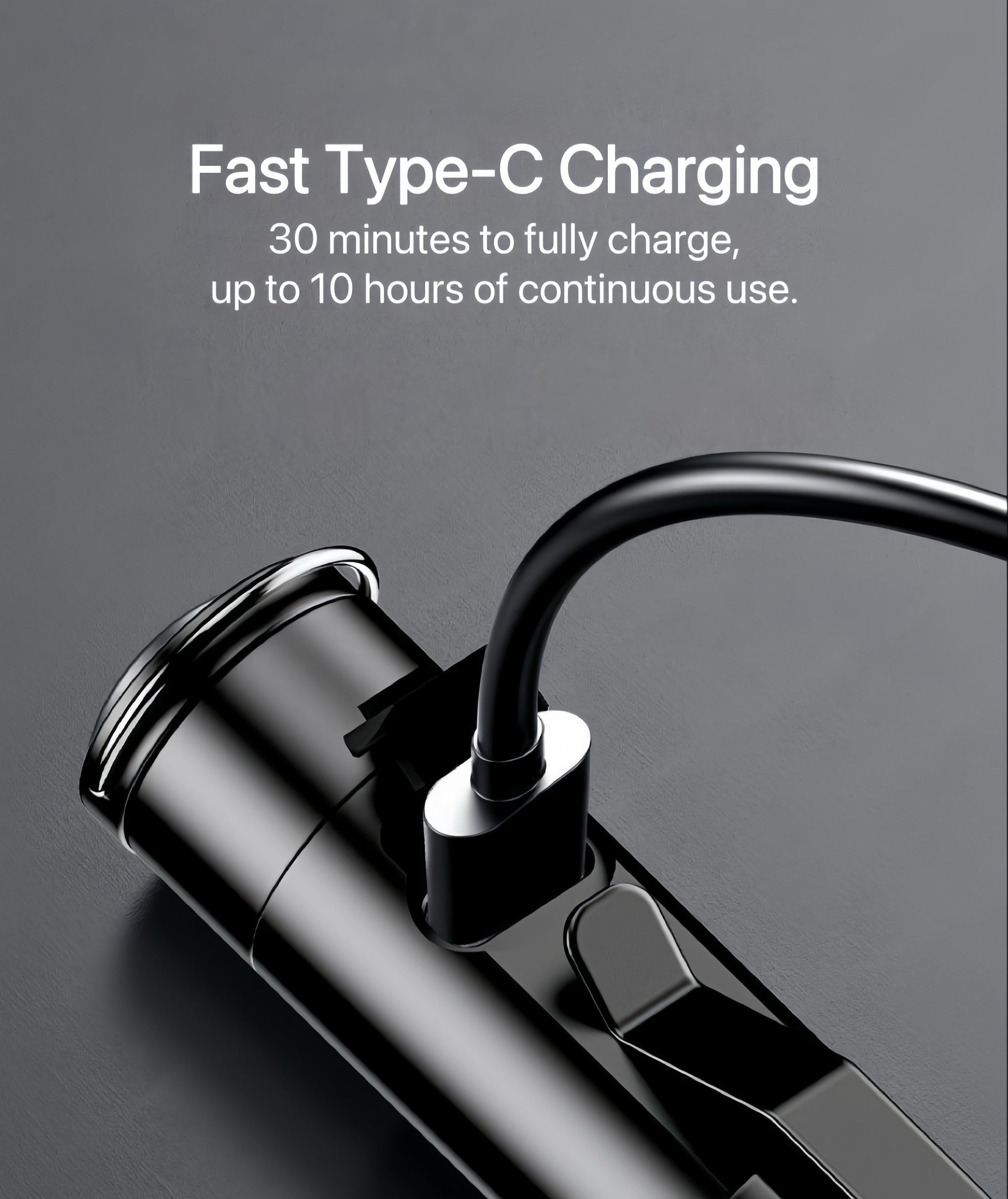 Powered by a 300mAh battery and equipped with premium aluminum nitride LED beads, it delivers bright, energy-efficient light. It charges in just 30 minutes and runs for up to 2.5 hours on high or 10 hours on low.